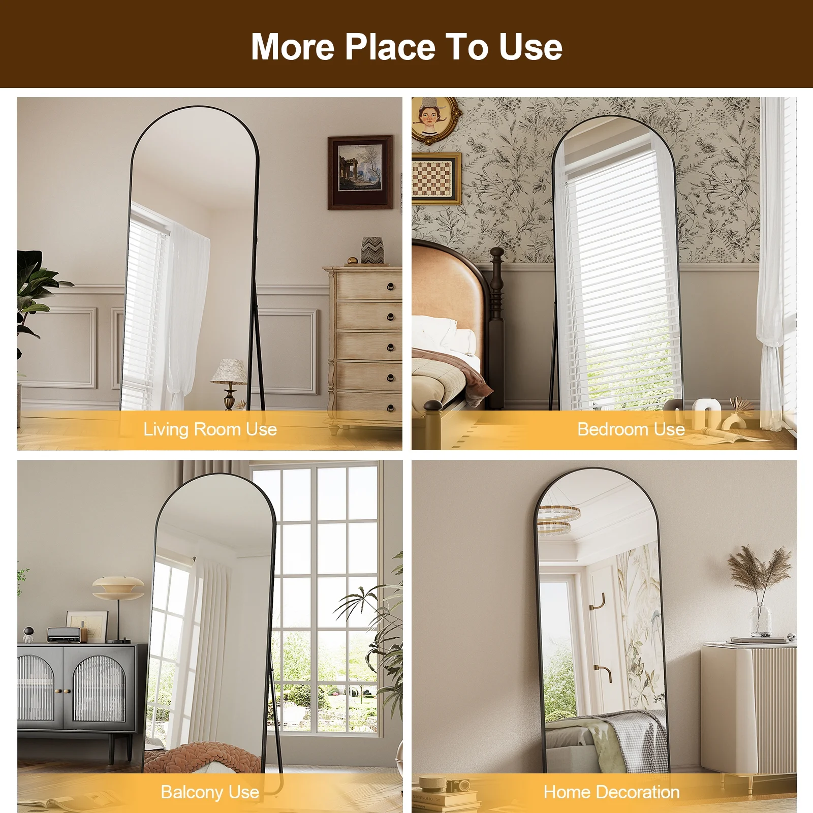 - ✔Classic Design: Combining an arched outline with a metallic texture, this floor mirror blends practical functionality and stylish decor, ideal for everyday use and enhancing room aesthetics.